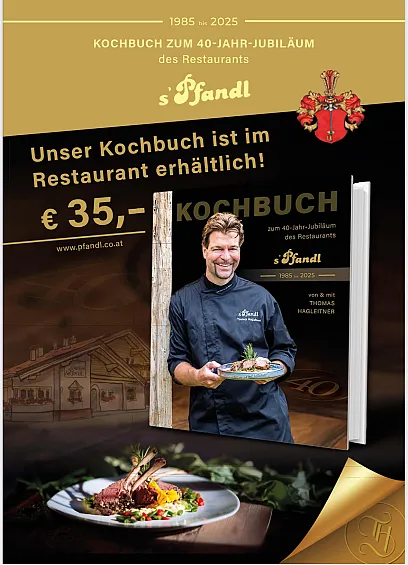 Schon seit 1985 steht das Pfandl für echten Genuss, regionale authentische Spezialitäten und für kreative Schmankerln. Besonders im Winter verbreitet das knisternde Kaminfeuer eine besondern Zauber, gemütlicher kann es kaum sein. Dabei kann das Auge schon an der ein oder anderen Rarität hängen bleiben die über die Jahre zusammen getragen wurden, meist wertvolle Geschenke von Stammgästen wie das Geweih eines afrikanischen Wasserbüffels oder einer Antilope und immer wieder kommt etwas dazu.